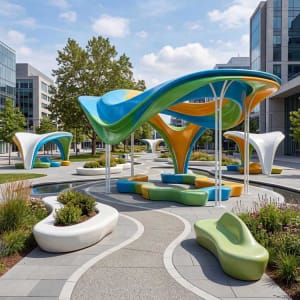 Combines aesthetics and functionality for public spaces, with strong weather resistance, enhancing the overall urban environment.